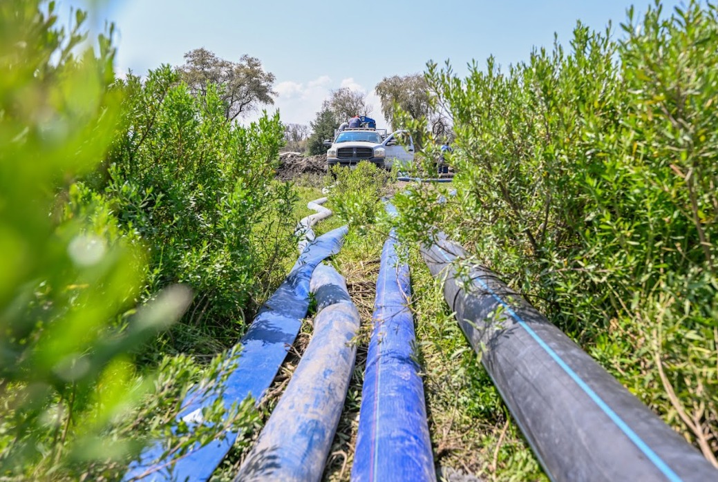 Lerma, Méx.- Puso en marcha una bomba de gran capacidad para retirar el agua acumulada en zonas afectadas por las intensas lluvias en San Pedro Tultepec, municipio de Lerma, el Gobierno del Estado de México. Se trata del equipo “Goliath”, con capacidad para desalojar 1,500 litros de agua por segundo hacia el Río Ocoyoacac, que conecta con el Río Lerma.
