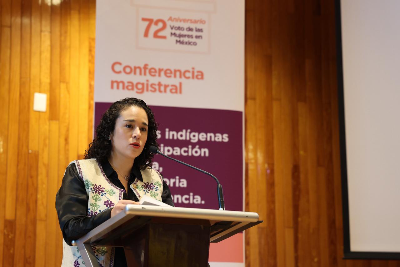 Toluca.- El Instituto Electoral del Estado de México (IEEM) conmemoró el 72° aniversario del voto femenino en México con la conferencia magistral Mujeres indígenas y participación política: una historia de resistencia, impartida por Eufrosina Cruz Mendoza. El evento fue organizado por el Observatorio de Participación Política de las Mujeres en el Estado de México (OPPMEM).