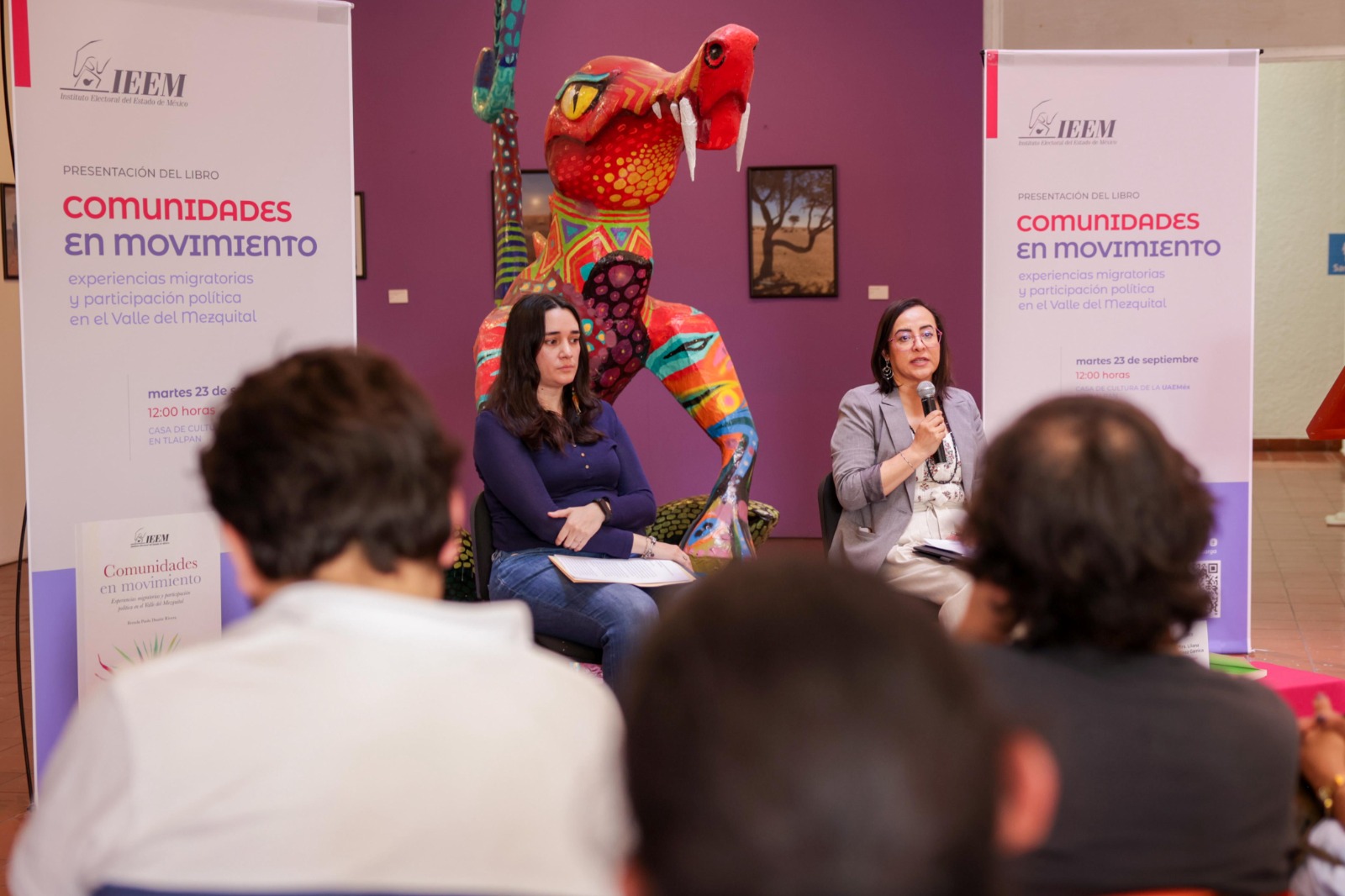 Toluca.- El Instituto Electoral del Estado de México (IEEM), a través de su Centro de Formación y Documentación Electoral (CFDE), presentó el libro Comunidades en movimiento. Experiencias migratorias y participación política en el Valle del Mezquital, escrito por la socióloga Brenda Paola Duarte Rivera. La presentación se llevó a cabo en la Casa de la Cultura de Tlalpan de la Universidad Autónoma del Estado de México (UAEMéx).