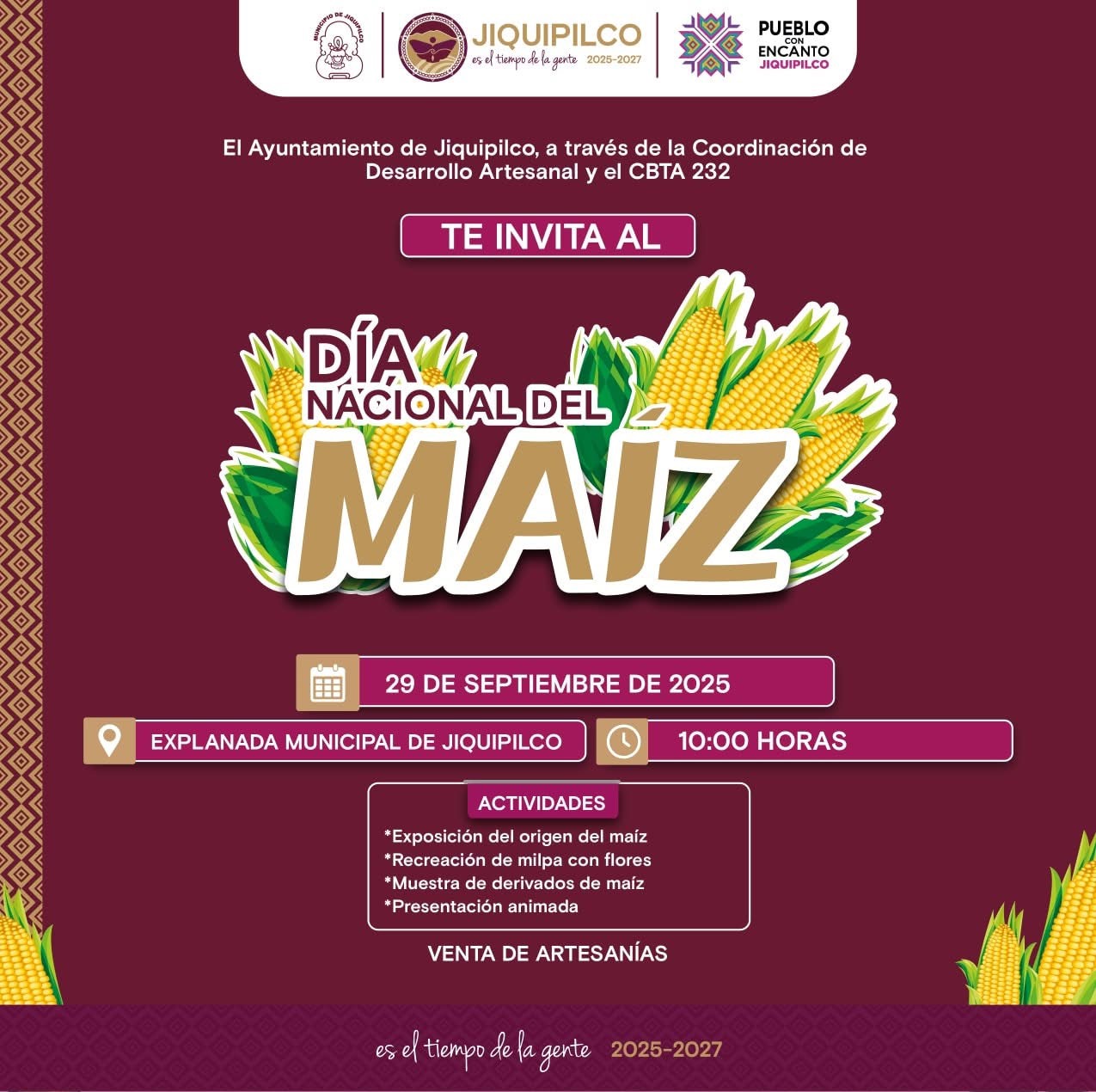Jiquipilco, Méx. Se alista para conmemorar este 29 de septiembre el Día Nacional del Maíz, el municipio de Jiquipilco, una fecha que reconoce a este grano como símbolo de identidad, patrimonio y orgullo de las y los mexicanos.