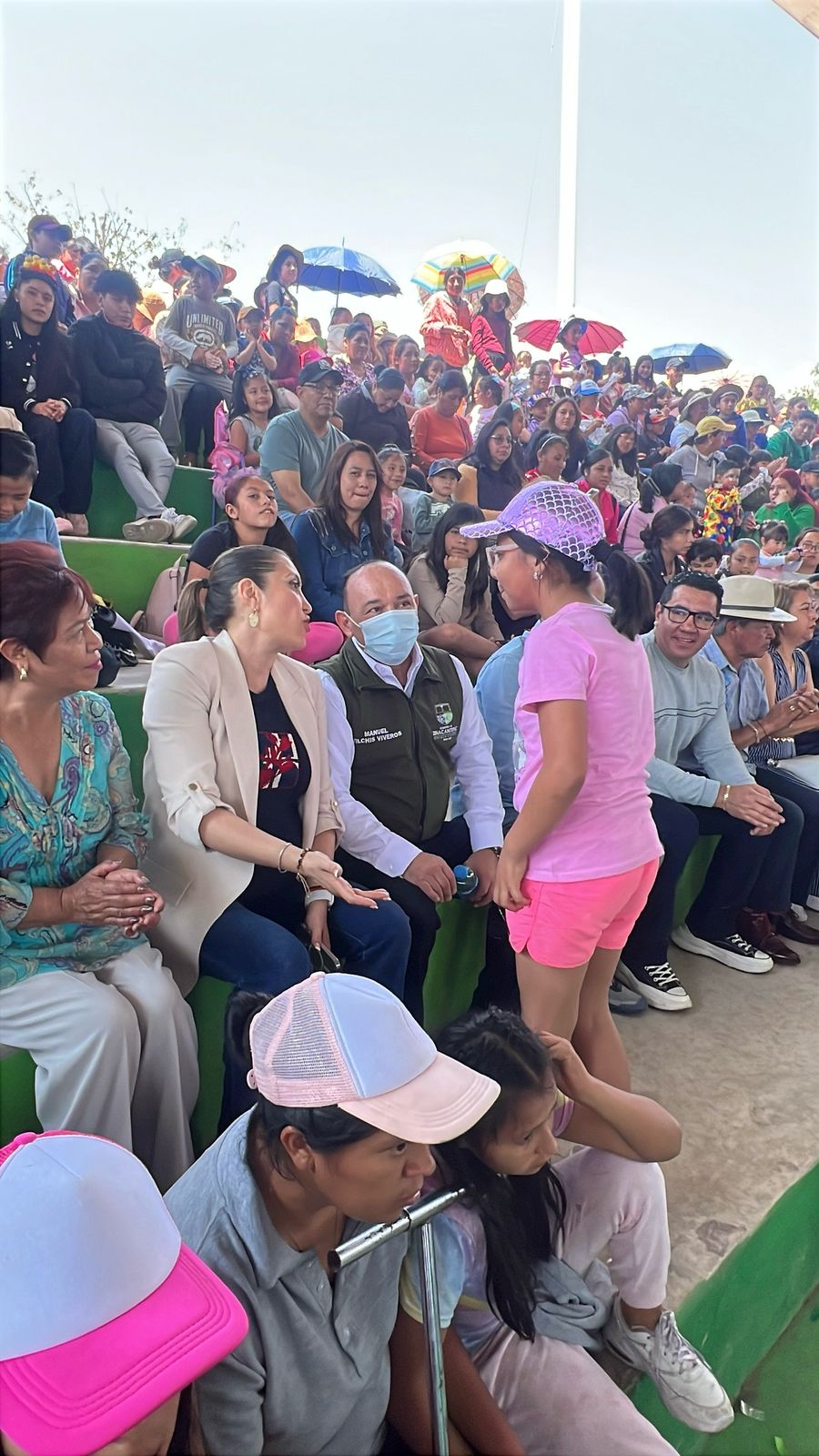 Las celebraciones continuaron por la tarde en diversas comunidades como Santa María del Monte, donde el alcalde y su esposa Jessica Ríos Lara, presidenta honoraria del DIF Municipal, convivieron directamente con niñas, niños y padres de familia, reiterando su compromiso de llevar bienestar sin distinción a todas las comunidades.