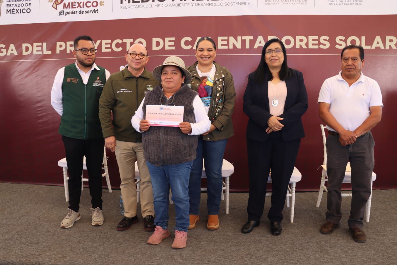 Durante el evento, la secretaria Alhely Rubio Arronis y el alcalde Manuel Vilchis Viveros realizaron la entrega de 50 calentadores solares a familias de las comunidades de Tejalpa, San Antonio Acahualco y San Juan de las Huertas, reafirmando el compromiso conjunto con la sustentabilidad y el bienestar social.