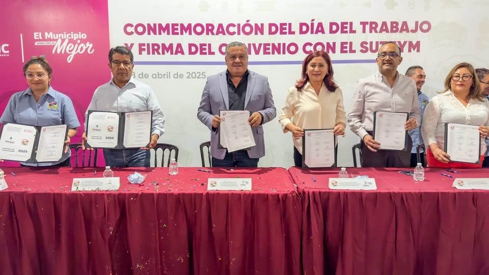 Tecámac, Méx.- El Sindicato Único de Trabajadores de los Poderes, Municipios e Instituciones Descentralizadas del Estado de México (SUTEYM) llevó a cabo la firma del Convenio de Sueldos y Prestaciones Socioeconómicas 2025 con el Gobierno Municipal de Tecámac, lo que refrendó los lazos institucionales, legales y laborales entre ambas partes.
