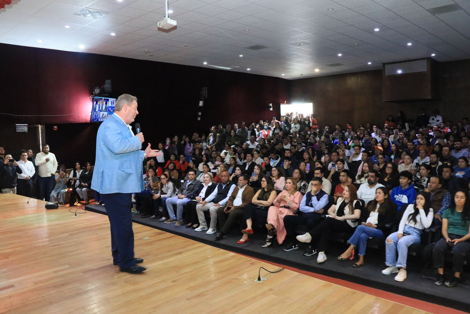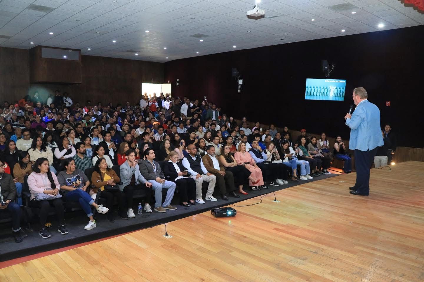 San Mateo Atenco, Méx.– Con el objetivo de fortalecer el crecimiento económico y promover la innovación local, la presidenta municipal Ana Aurora Muñiz Neyra recibió al empresario y referente del emprendimiento en México, Marcus Dantus, quien impartió una conferencia magistral en el Teatro Sor Juana, ante empresarios, productores y emprendedores atenquenses.