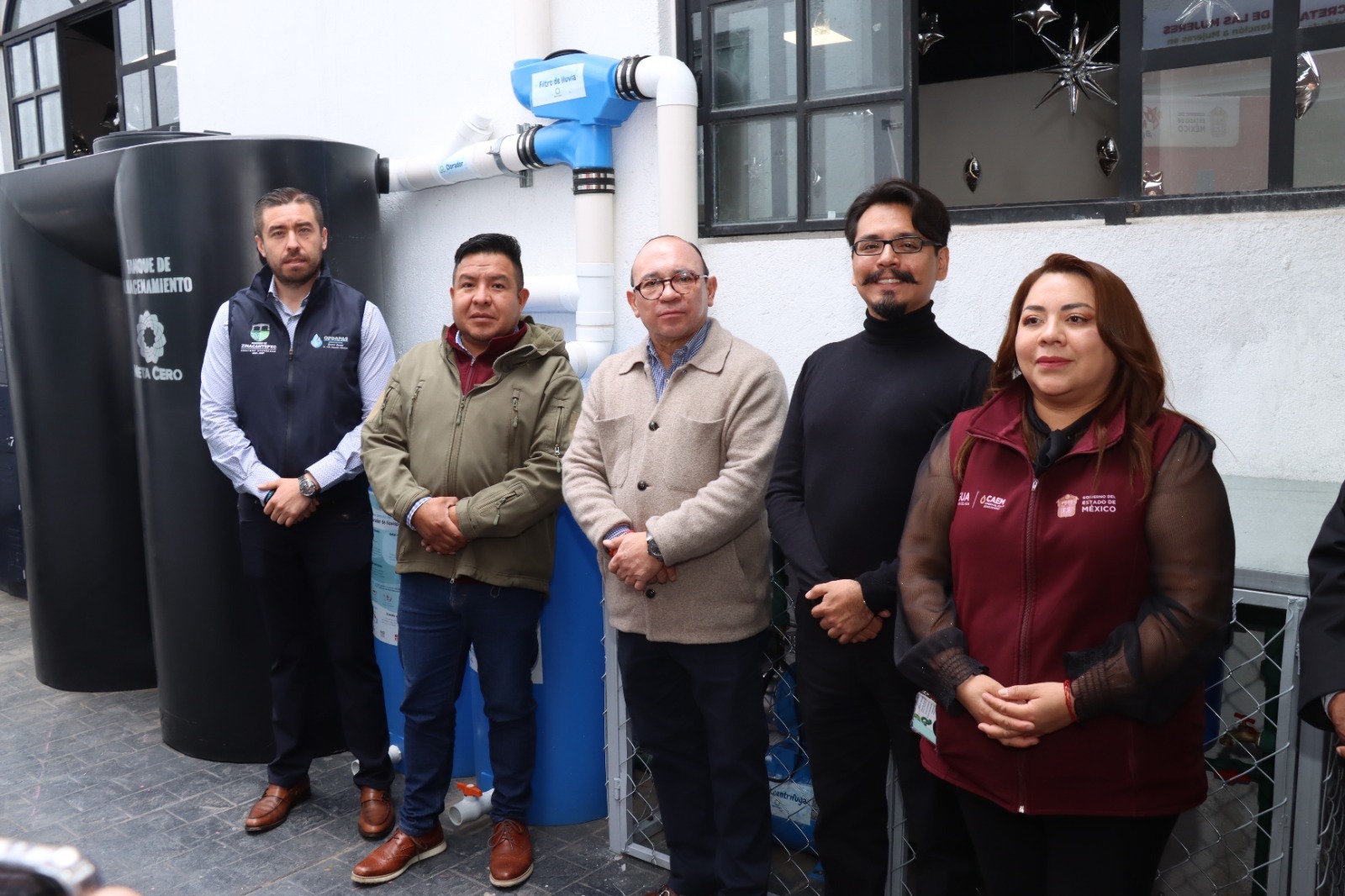 Zinacantepec, Méx.– En un paso firme hacia el aprovechamiento responsable del agua, el municipio de Zinacantepec inauguró el primer Sistema de Captación y Purificación de Agua Pluvial en la Casa de Cultura “Matilde Zúñiga”, en coordinación con la Secretaría del Agua del Estado de México, la Comisión del Agua del Estado de México (CAEM), la organización Neta Cero y la Fundación Coca-Cola México (FEMSA).